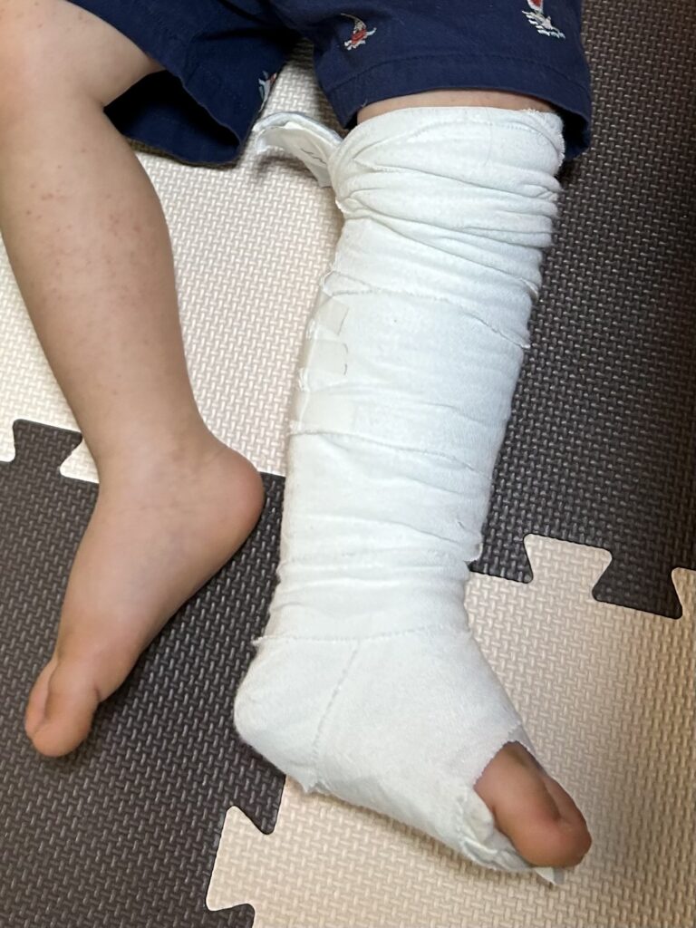 3歳のお誕生日目前で、滑り台での事故で骨折をしてしまった息子。